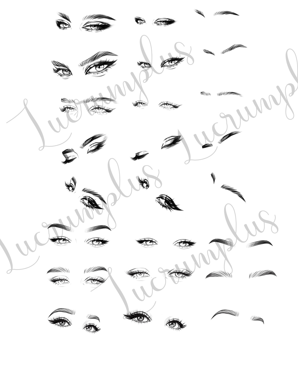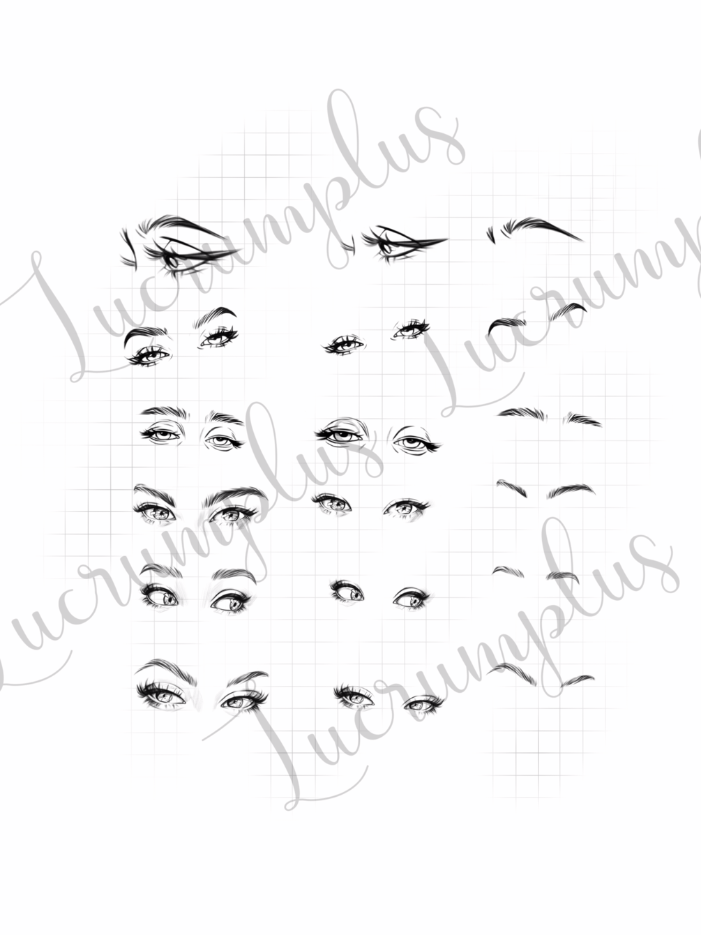 42 Guide Stamps Eyes And Eyebrows Brushes, Stamps for Procreate App, Guide Brushes For Portrait, Digital Brushes, Procreate Brash Set